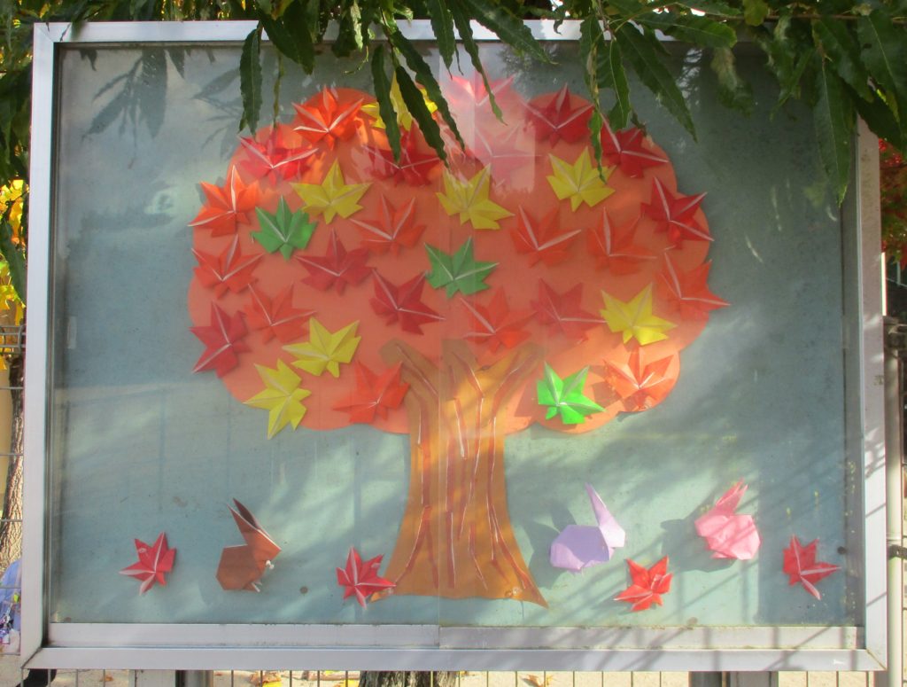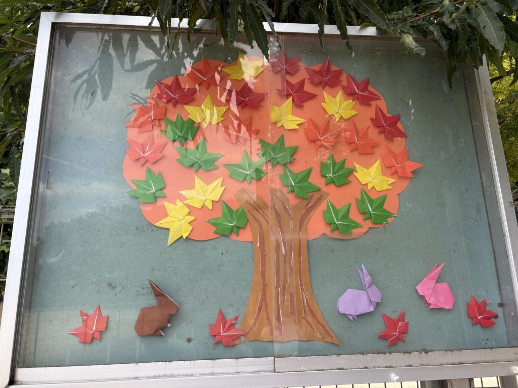 こども園内や周辺の木々が、ようやく色づいてきました。