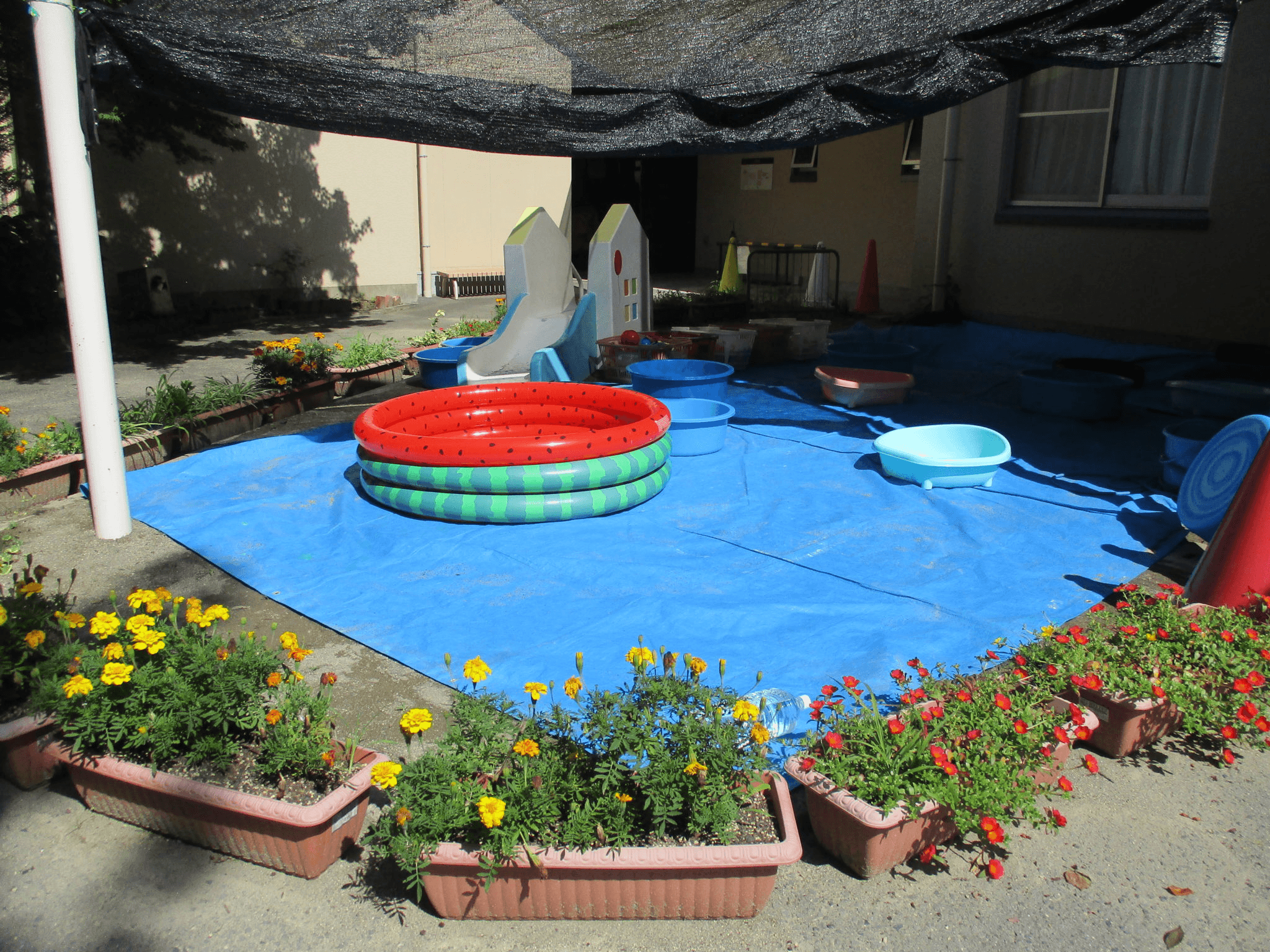 幼児は園庭に常設しているプールに入ります。